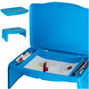 Parametry techniczne:Tworzywo: plastikKolor: niebieskiWymiary stolika: 48 cm x 29 cm x 18,5 cmWymiary opakowania: 44,5 cm x 32 cm x 5,5 cmRodzaj opakowania: folia
