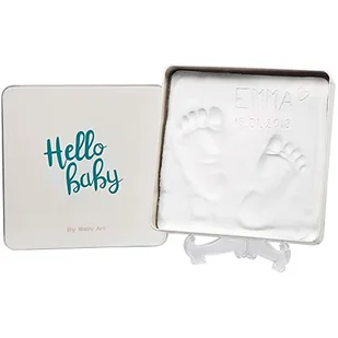 Dzięki temu magicznemu glinianemu pudełku od Baby Art możesz zamienić dłoń lub odcisk stopy swojego dziecka w piękną, trwałą pamiątkę. To kwadratowe, magiczne pudełko zawiera wszystko, czego potrzebujesz, aby stworzyć trwałą pamiątkę z maleńkich odcisków noworodka. Aby wykonać odcisk, należy odcisnąć dłoń lub stopę dziecka na glinianej podstawie. Proces ten jest bardzo łatwy do przeprowadzenia. Nie wymaga pieczenia ani innych materiałów - wszystkie materiały do modelowania są zawarte w zestawie.