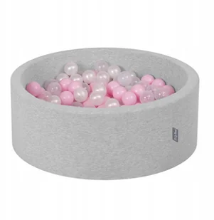 KiddyMoon Suchy basen okrągły z piłeczkami 7cm jasnoszary: pudrowy róż-perła-transparent 90x30cm/200piłek Zabawka basen piankowy