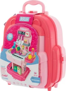 Plecak kuchnia dla małego kucharza. Zabawka zapewni dziecku wielogodzinną rozrywkę oraz będzie rozwijać u niego koordynację wzrokowo-ruchową oraz kreatywność. Zestaw pozwala na zabawę samodzielną lub z innymi osobami. Zabawka wykonana jest z wysokiej jakości plastiku co, zwiększa trwałość zabawki. Plecak posiada szelki i można założyć go na plecy. Posiada również wygodny uchwyt do przenoszenia, a 5 klipsów solidnie zamyka plecak, co gwarantuje, że zawartość plecaka nie rozsypie się nam przypadkowo. Zabawkę można przekształcić w formę stolika. Zestaw zawiera m.in.: - naczynia - warzywa - sztućce - blat do gotowania - akcesoria kuchenne - pojemniczki, buteleczki Wymiary: 26 x 27 x 14 cm Wiek: 3+