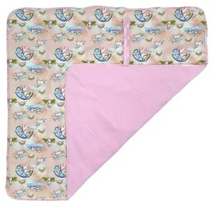 Matę można też z powodzeniem stosować jako podkład ochronny pod prześcieradło - nie posiada żadnych twardych części, guzików itp. Mata to idealne rozwiązanie, by przewinąć maluszka podczas wyjścia z domu - możesz ją położyć na publicznym przewijaku lub kanapie koleżanki i nie martwić się o przemoknięcie : ) Możesz ją także położyć na dnie gondoli lub na siedzeniu fotelika samochodowego w trakcie odpieluchowania. nieprzemakalna chłonie wilgoć i pozostaje sucha miękkie wnętrze obszyta na płasko, dzięki czemu można stosować jako podkład pod prześcieradło można prać w pralce, bardzo szybko schnie rozmiar 69x69cm