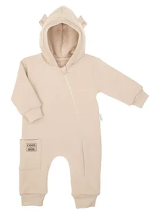 Pajac dresowy z podszewką dla chłopca, uszyty z beżowej bawełny dresowej z niewielką ilością elastanu. Idealny do wózka, czy fotelika. Posiada ściągacze w rę...