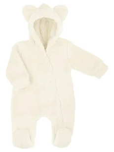 Wyprodukowano w Polsce Pajac z kremowej luny. Został uszyty z przemiłego futerka, co sprawia, że ubranko idealnie nadaje się na chłodniejsze dni. Całość zdobi kaptur z uszkami. Pajac zapinany na wygodny zamek - ułatwi to znacznie ubieranie dziecka. Materiał jest całkowicie bezpieczny dla skóry maluszka.
