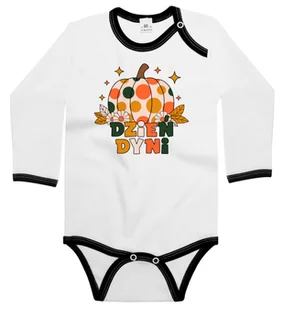 💙 Body dziecięce z długim rękawem z nadrukiem Dynia W Kolorowe Kropki Z Napisem Na Dzień Dyni Biało-Czarne 98/104 nr wzoru: nr wzoru: 121712134882 👶 Twoje dziecko zasługuje na wszystko, co najlepsze — a nasze bawełniane body z nadrukiem to gwarancja wygody, bezpieczeństwa i… odrobiny magii dzieciństwa! 🐉✨