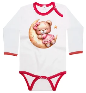 💙 Body dziecięce z długim rękawem z nadrukiem Miś W Różowej Sukience Tulący Księżyc Dzień Misia Biało-Czerwone 74/80 nr wzoru: nr wzoru: 121315135198 👶 Twoje dziecko zasługuje na wszystko, co najlepsze — a nasze bawełniane body z nadrukiem to gwarancja wygody, bezpieczeństwa i… odrobiny magii dzieciństwa! 🐉✨