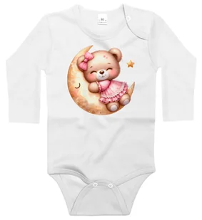 💙 Body dziecięce z długim rękawem z nadrukiem Miś W Różowej Sukience Tulący Księżyc Dzień Misia Białe 86/92 nr wzoru: nr wzoru: 121501135198 👶 Twoje dziecko zasługuje na wszystko, co najlepsze — a nasze bawełniane body z nadrukiem to gwarancja wygody, bezpieczeństwa i… odrobiny magii dzieciństwa! 🐉✨