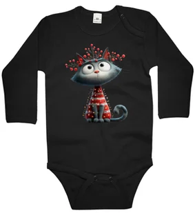 Body dziecięce Szary Kot Kotek Ubrany W Lampki Choinkowe Święta 86/92