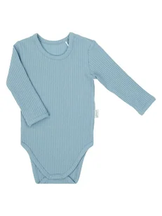 Body z długim rękawem w kolorze niebieskim, uszyte z prążkowanej bawełny z niewielką ilością elastanu. Materiał posiada certyfikat Oeko-Tex Standard 100 Tekstylia godne zaufania. Produkt jest zapinany na ramieniu oraz w kroku na bezniklowe napy. Klasyczny fason znakomicie uzupełni niejedną stylizację.