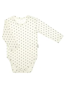 Body z długim rękawem dla dziewczynki, uszyte z kremowej bawełny w czarne kropki. Zapinane na bezniklowe napy w kroku i na ramieniu, co ułatwia przebieranie dziecka. Materiał posiada certyfikat Oeko-Tex Standard 100 Tekstylia godne zaufania.