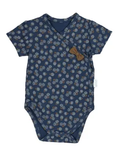 Niemowlęce body bawełniane z krótkim rękawem kwiatki granatowe Nicol,r.62