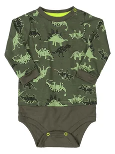 Niemowlęce body dla chłopca z długim rękawem to wygodny i stylowy element garderoby maluszka. Ozdobione uroczym wzorem w dinozaury, doda każdej stylizacji dziecięcego uroku. Wykonane z miękkiego, przyjaznego dla skóry materiału, zapewnia komfort noszenia przez cały dzień. Zapięcie na napy w kroku ułatwia przebieranie i zmianę pieluszki. Dostępne w kilku wariantach kolorystycznych, dzięki czemu można wybrać idealny model dla małego miłośnika dinozaurów!