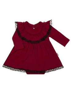 Sukienko-body z długim rękawem wykonane z bordowego materiału. Materiał posiada certyfikat Oeko-Tex Standard 100 Tekstylia godne zaufania. Fason zdobi marszc...