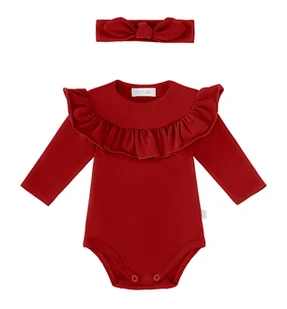 Zestaw bawełniane body z długim rękawem i opaska z supełkiem Eleganckie body z długim rękawem, uszyte w Polsce, z wysokogatunkowej bawełny (100%). Body są bardzo stylowe, ale też wygodne i elastyczne. Doskonale się układają i nie krępują ruchów maluszka. W kroku i na ramieniu posiadają bezniklowe, bezpieczne dla skóry dziecka napy, które ułatwiają ubieranie. Szeroka falbanka wokół dekoltu sprawia, że body prezentują się wyjątkowo efektownie.