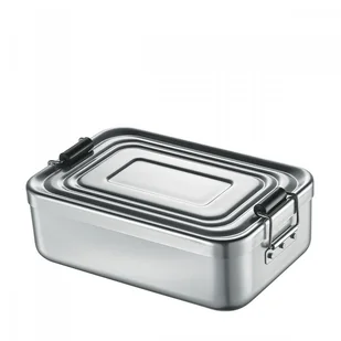 Pojemnik na lunch Kuchenprofi to retro, aluminiowe pudełko. Niezwykle stylowe i designerskie. Szczelnie się zamyka na dwa solidne zatrzaski, przy czym całe pudełko je bardzo lekkie. Pudełko dodatkowo wyposażone jest w separator z tworzywa sztucznego co zapobiega mieszaniu się składników naszego posiłku. Pojemnik możemy bezpiecznie przenosić w torbie, lub w plecaku.