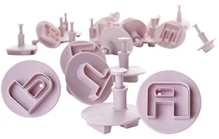 Zestaw dziurkaczy z tłokiem, wykonanych z tworzywa sztucznego. Średnica liter wynosi 4-6 cm. Kształty: litery od A do Z. Można myć w zmywarce. Zestaw zawiera 26 sztuk. Bardzo łatwe w użyciu.