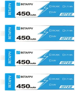 BetaFPV BT2.0 450mAh 4-pack, Zestaw baterii do dronów 1S, 3.8V, 450mAh