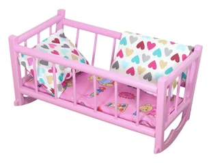 KOŁYSKA RETRO drewniana łóżeczko różowe dla lalek pościel w duże serca Drewniana kołyska dla lalek w kolorze różowym - z materacem i pościeląPrzedstawiamy urocze, drewnianą kołyskę dla lalek w eleganckim różowym kolorze - idealny dodatek do każdej dziecięcej kolekcji zabawek!Wykonane z najwyższej jakości drewna, łóżeczko zachwyca solidnym wykonaniem i dbałościąo każdy detal. Jego klasyczny, minimalistyczny design doskonale wpasuje się w każdy pokój dziecięcy, a różowy kolor sprawia, że łóżeczko pasuje zarówno dla lalek chłopców, jak i dziewczynek.