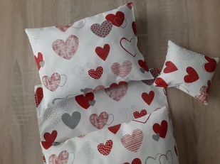 Pościel dla lalki do wózka łóżeczka kołyski 4 elementy nowe Serduszka