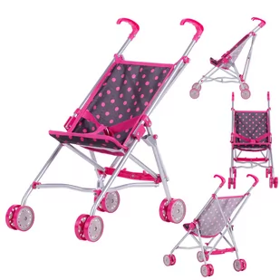 WÓZEK SPACEROWY LILY w wyjątkowym kolorze BLACK and PINK DOTS Wózek spacerowy dla lalek w kolorze różowym, wykonany jest z wysokiej jakości materiałów. Ciemno-różowe dodatki w postaci rączek, kółek, czy pasów bezpieczeństwa idealnie podkreślają siedzisko w kolorze czarnym z różowymi kropkami. Lekka konstrukcja, wygodne rączki oraz możliwość szybkiego złożenia, uprzyjemnią każdą zabawę i wspólny spacer z ulubioną lalką lub misiem. Pasy bezpieczeństwa pozwalają na zwiększenie świadomości dziecka na temat bezpieczeństwa. Pozwalają również zachować lalkę w czystości podczas spacerów na zewnątrz.