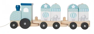 Uroczy drewniany pociąg z klockami do nakładania, i szrureczkiem do ciągnięcia w pięknej niebieskiej kolorystyce każdy klocek z innym motywem z pewnością spodoba się każdemu maluchowi. Produkt szwedzkiej marki Jabadabado składa się z trzech wagonów, a każdy z wagonów przewozi swoje klocki. Pociąg posiada wygodny sznurek do ciągnięcia, co z pewnością urozmaici zabawę. Zapakowany w estetyczne pudełko, idealnie sprawdzi się na prezent. Świetna zabawka edukacyjna nie tylko do ciągnięcia, ale również do nauki kształtów i poznawania kolorów.