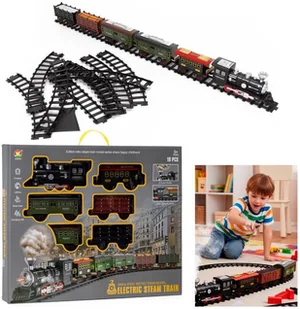 Lokomotywa parowa z mgiełką, dźwiękiem i torami, pociąg z wagonami, zabawka interaktywna dla dzieci
