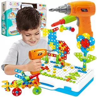 Za pomocą śrub i wierteł możesz tworzyć kolorowe wzory. Wkrętarka działa w trybie dokręcania i odkręcania śrub . Śrubokręt wymaga 2 baterii AA 1,5 V (brak w zestawie) Instrukcja z 40 obrazkami, wzorami. Rozwija logikę, doskonal umiejętności motoryczne, wytrwałość, wyobraźnię dziecka. Rozrywka docenią nie tylko chłopcy, ale także dziewczęta.