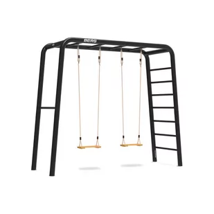 Plac zabaw od marki BERG to całkowicie nowa koncepcja zabawy na świeżym powietrzu. Ten zestaw jest oparty na dużej ramie PlayBase z jednym drążkiem i jedną drabinką. Opcje huśtania obejmują 2 x huśtawki drewniane.