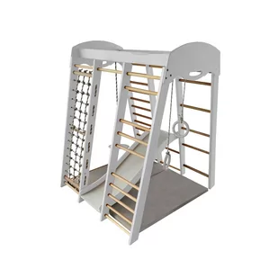 Domowy plac zabaw Mamut Light biały Najważniejsze cechy produktu: wielofunkcyjny kącik zabaw unikalne stylowe opracowanie wykonany z drewna Dane Techniczne: Dopuszczalne obciążenie: 60 kg Wymiary zestawu: 130x125x155 cm Wyposażenie: