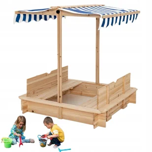PIASKOWNICA DREWNIANA Z DASZKIEM I ŁAWECZKAMI 107x110x121cm DLA DZIECI