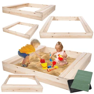 Piaskownica drewniana z ławeczkami, plandeką i agrowłókniną – trwałość, bezpieczeństwo i komfort zabawy! IMPREGNAT DOPUSZCZONY DO KONTAKTU Z DZIEĆMI! ⭐ Wygod...