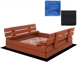 Piaskownica zamykana z ławeczkami 100x100 cm drewno impregnowane, z włókniną i plandeką, brązowa UNIWERSALNY