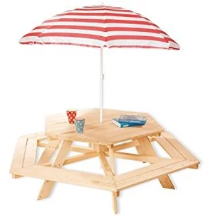 Zestaw mebli dla dzieci Nicki 6-Eck marki Pinolino składa się z 1 stołu i 6 ławek. Jest idealny do aktywności w ogrodzie lub na tarasie: malowania, jedzenia, zabawy lub po prostu siedzenia i cieszenia się słońcem. Wykonany z litego, niepoddanego obróbce drewna świerkowego zestaw mebli jest solidny i może pomieścić do 6 dzieci. Dzięki siedzisku na wysokości 28 cm stół i ławki są idealne dla małych sportowców lub piratów, którzy chcą złapać chwilę wytchnienia na pikniku i odpocząć, zanim ponownie zanurzą się w swoich przygodach.
