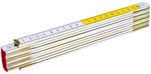 Człony wykonane z wysokiej jakości drewna bukowego o grubości 2,85 mm. Biało-żółta podziałka umożliwiająca szybki odczyt. Miarka posiada obustronną podziałkę w cm i mm.