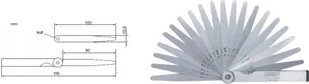Komplet szczelinomierzy listkowych MWSb 17 szt. w zakresie 0,02-1,0 mm - Dugo listkw 100 mm - W komplecie listki o gruboci: 0,02; 0,03; 0,04; 0,05; 0,06; 0,07; 0,08; 0,09; 0,10; 0,15; 0,20; 0,25; 0,30; 0,40; 0,50; 0,75; 1,00 - Wykonane wg DIN 2275 - Dokadno: (3+T/80) m, T- grubo listka w m - Materia: stop stali hartowanej Rodzaj: