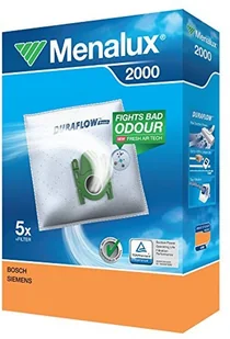 Menalux 2000 Zestaw 5 Worków do Odkurzacza Cylindrycznego + 1 mikrofiltr, Wysokowydajny materiał syntetyczny DuraFlow, 50% dłuższa żywotność i lepsza filtracja, Pasuje do Bosch, Siemens, Privileg