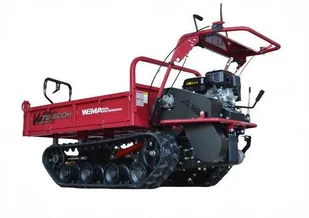 Spalinowa mini wywrotka WEIMA WM 7B-500H z hydraulicznym podnoszeniem i opuszczaniem przyczepy. Sercem maszyny jest silnik benzynowy WM170F o mocy 7 KM, który jest niezawodny i sprawdzi się idealnie w ciężkich warunkach. Wozidło narzędziem idealnie sprawdzającym się w polu, na budowie, w ogrodzie, pagórkowatym lub piaskowym terenie. Dzięki przemyślanej konstrukcji i zastosowanej technologii zapewni łatwą i przyjemną obsługę, oraz sprawdzi się idealnie na każdej powierzchni. Ładowność urządzenia wynosi aż 500 kg! Długość styku toru z podłożem wynosi 760 mm. Przyczepa jest podnoszona o 50 stopni. CECHY: