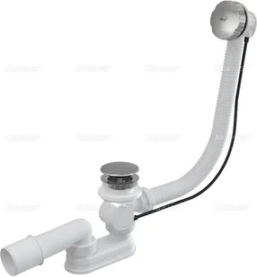 Pokrętło sterujące wykonane z metalu pokrytego chromem. Syfon wannowy pasujący do standardowych wanien.