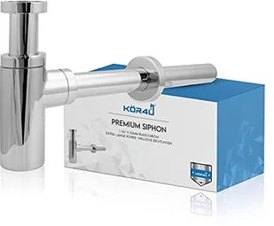 kör4u Premium Design syfon okrągły, chrom, uniwersalny – 1 1/4 cala x 32 mm, w zestawie uszczelki, zamknięcie zapachowe, syfon do umywalki w łazience, długa rura odpływowa