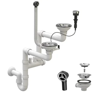 Syfon przyścienny automatyczny dwukomorowy - Chrom