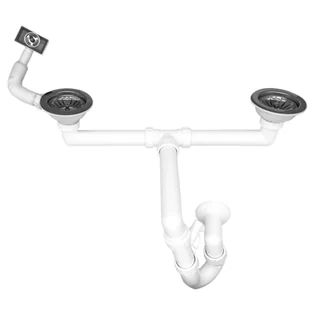 Syfon zlewozmywakowy podwójny sitko 3,5" z zestawem odpływowo-przelewowym uniwersalnym do zlewów metalowych i granitowych Xleo