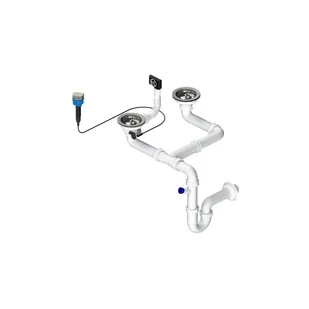 Syfon zlewozmywakowy podwójny rurowy z przelewem, firmy Tycner. Syfon rurowy z metalowym sitkiem o średnicy 115 mm przeznaczony jest do dwukomorowych zlewów z przelewem w komorze. Umożliwia przepływ zanieczyszczeń do kanalizacji i zatrzymuje nieprzyjemne zapachy. Syfon wykonany jest tworzywa sztucznego w kolorze białym. Posiada przelew wertykalny/horyzontalny o ujściu okrągłym i prostokątnym odprowadzający nadmiar wody.