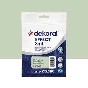 EFFECT 3in1 to plamoodporna farba rekomendowana do malowania wszystkich pomieszczeń, jak salon, sypialnia, pokój dziecięcy, korytarz, kuchnia i łazienka. Dzięki zawartości twardych jak diament kryształów korundu, posiada doskonałą odporność na zmywanie i szorowanie - bez zacieków. Dlatego umożliwia miejscowe czyszczenie stref najbardziej narażonych na zabrudzenia, jak okolice kontaktów, korytarze, dolna strefa ściany. Matowe wykończenie pozwala zamaskować niewielkie niedoskonałości podłoża. Farba silnie kryje, doskonale się rozprowadza i nie chlapie, gwarantując łatwość malowania i znakomity efekt nawet dla początkujących.