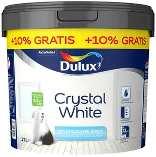 Dulux Crystal White to wysokiej jakości akrylowa emulsja wodna przeznaczona do malowania ścian i sufitów wewnątrz pomieszczeń mieszkalnych, biurowych i użyteczności publicznej. Może być stosowana na tynki [cementowe i cementowo-wapienne], podłoża gipsowe, płyty kartonowo-gipsowe, tapety papierowe i z włókna szklanego. Tworzy trwałe powłoki o absolutnie białym odcieniu bieli (100/100 w skali bieli) oraz głęboko matowym wykończeniu. Zawartość LZO bliska zeru sprawia, że ma neutralny zapach. Emulsja doskonale rozprowadza się po powierzchni ścian, a dzięki minimalnemu poziomowi chlapania, ogranicza stopień zabrudzeń.