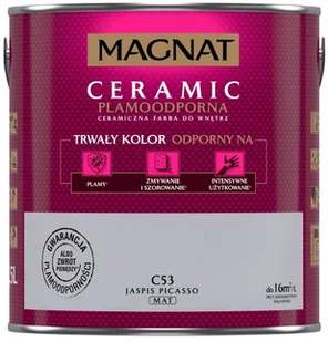 MAGNAT CERAMIC, ceramiczna farba do wnętrz bazująca na ceramicznych komponentach oraz najwyższej jakości żywicach i pigmentach. Ta unikalna formuła zapewnia farbie MAGNAT trwały kolor odporny na: plamy, zmywanie i szorowanie oraz intensywne użytkowanie3. Powłoki farby nie absorbują zabrudzeń i ,,trudnych" plam1 oraz są odporne na dezynfektanty2.