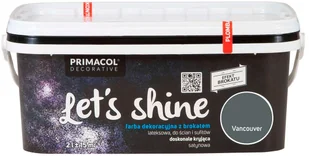 Farba Let's shine - Primacol Decorative Farba do wnętrz z brokatem Kolor: Vancouver Pojemność: 2l Let's shine to farba dekoracyjna połyskująca tysiącem srebrzystych drobinek. Uzyskany efekt jest bardzo subtelny, a jego intensywność wzrasta przy dobrym oświetleniu. Produkt przeznaczony jest do malowania ścian i sufitów wewnątrz pomieszczeń.