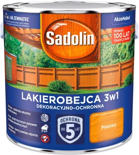 SADOLIN LAKIEROBEJCA 3W1 PINIOWY 2,5L Dekoruje drewno, trwale barwiąc i podkreślając jego naturalny rysunek. Nadaje piękny wygląd za sprawą efektu Velvet Touch(TM), powodującego, że uzyskana powłoka jest satynowa w dotyku. Produkt chroni drewno przed niszczącym wpływem czynników atmosferycznych, w szczególności przed mrozem, wilgocią i szkodliwym promieniowaniem UV. Szybkoschnąca formuła sprawia, ze farba jest odporna na wymycie przez niespodziewany deszcz już po 2 godzinach. Zapobiega biokorozji dzięki powłoce tworzonej na powierzchni drewna.