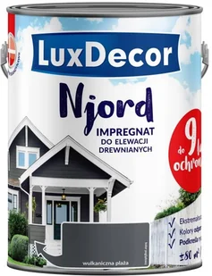 LUXDECOR IMPREGNAT DO ELEWACJI DREWNIANYCH NJORD Kolor: WULKANICZNA PLAŻA Pojemność: 5 l. Impregnacja drewna zapewni mu trwałość oraz ładny wygląd na długi czas! Impregnat Njord jest idealny do zabezpieczenie nowego drewna oraz do odnowienia i zabezpieczenia starego, już postarzałego. Impregnat to drewna Njord gwarantuje: ekstremalną odporność do 9 lat ochrony podkreślony rysunek słojów łagodny zapach Wskazówki: