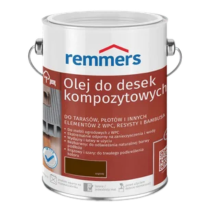 Olej do deski kompozytowej 0,75l brązowy - REMMERS - Olej Remmers do desek kompozytowych w kolorze brązowym o pojemności 0,75 litra to wysokiej jakości produkt zaprojektowany specjalnie do ochrony i konserwacji powierzchni drewnopodobnych, w tym desek kompozytowych. Dzięki zastosowaniu innowacyjnej formuły, olej głęboko wnika w strukturę desek, chroniąc je przed wpływem szkodliwych czynników atmosferycznych, takich jak wilgoć, promieniowanie UV, a także zanieczyszczenia i zarysowania. Olej pozwala na uzyskanie pięknej, naturalnej barwy, która podkreśla wyjątkowy charakter drewnopodobnych powierzchni. Produkt charakteryzuje się doskonałym kryciem, dzięki czemu zapewnia jednolity wygląd powierzchni oraz intensywny kolor. Jest łatwy w aplikacji i szybko schnie, co umożliwia skrócenie czasu renowacji powierzchni.