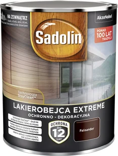 Sadolin Lakierobejca Extreme z technologią StayCleanTM to najwyższej jakości lakierobejca ochronno-dekoracyjna przeznaczona do malowania zewnętrznych powierzchni drewnianych. Jej unikalna, zaawansowana formuła nie tylko trwale chroni drewno, ale i zapewnia wymalowanym powierzchniom czysty i świeży wygląd na lata. Długotrwale zabezpiecza drewno i zapewnia mu piękny wygląd. Gwarancja 12 lat ochrony. Technologia StayCleanTM sprawia, że brud nie przylega do wymalowanej powłoki i łatwo się zmywa np.