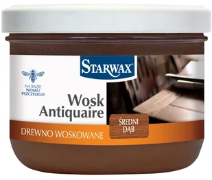 Wosk Antiquaire firmy Starwax przeznaczony jest do barwienia i wykańczania surowego drewna. Produkt ma konsystencję pasty, którą należy nakładać na oczyszczoną powierzchnię za pomocą szmatki, pędzla lub pakułów bawełnianych. Po aplikacji powierzchnie są zabezpieczone przed wilgocią oraz nabierają blasku i żywego koloru. Dostępny tutaj produkt jest w kolorze dąb średni.